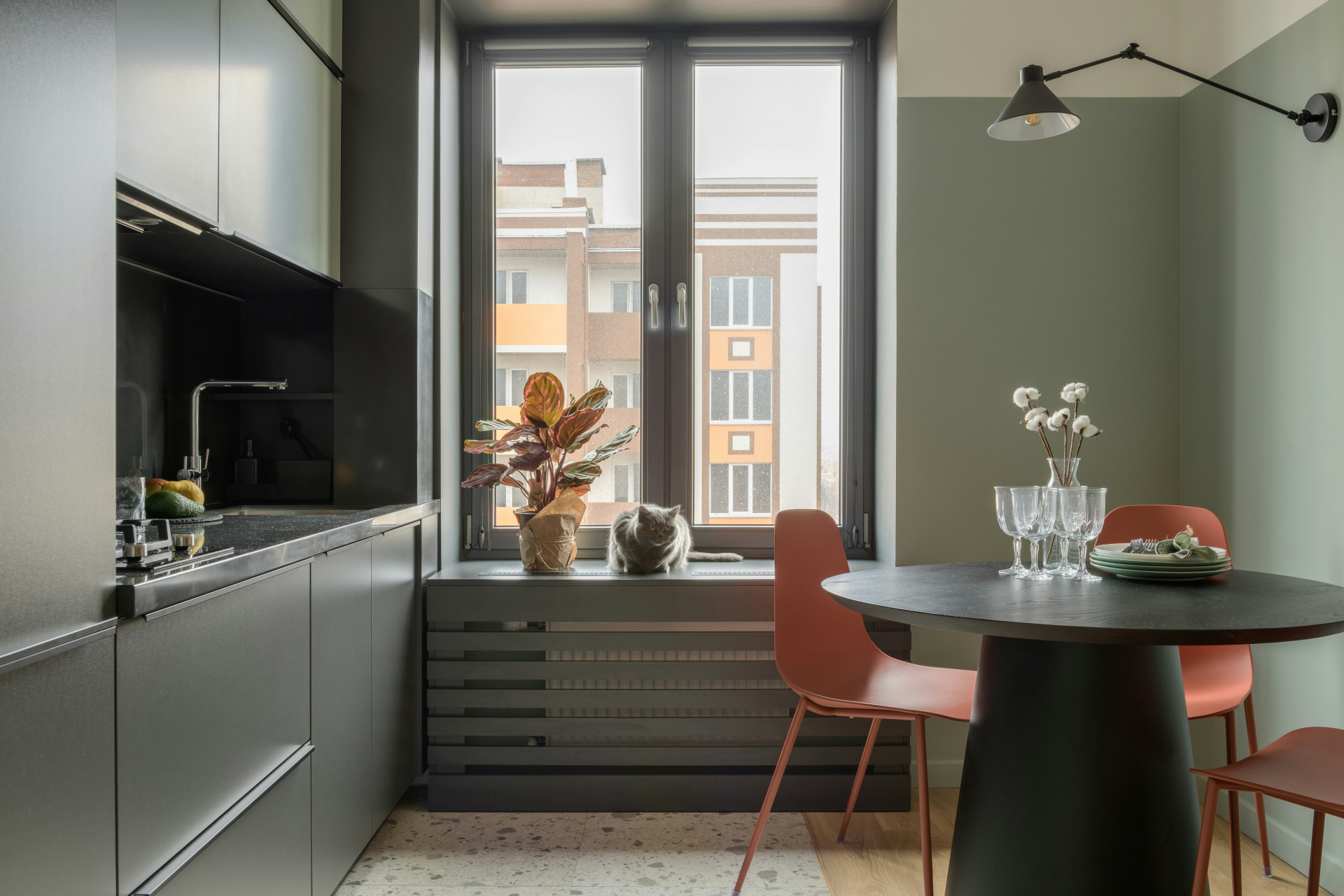 En mat overflade absorberer lyset og giver et roligt, afdæmpet udtryk. Den føles mere naturlig og varm, og mange forbinder den med en nordisk, minimalistisk stil. Mat finish skjuler små ridser og pletter bedre, hvilket gør den praktisk i en travl hverdag.