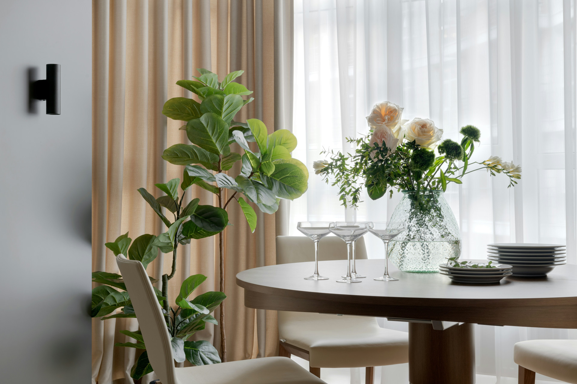 Når du har valgt farver og tekstiler, kan du fuldende udtrykket med små detaljer. En vase med friske blomster, en skål med frugt eller et par stearinlys kan fungere som naturlige midtpunkter. Brug gerne elementer, der gentager farverne fra tekstilerne, så bordet får et harmonisk helhedsindtryk.